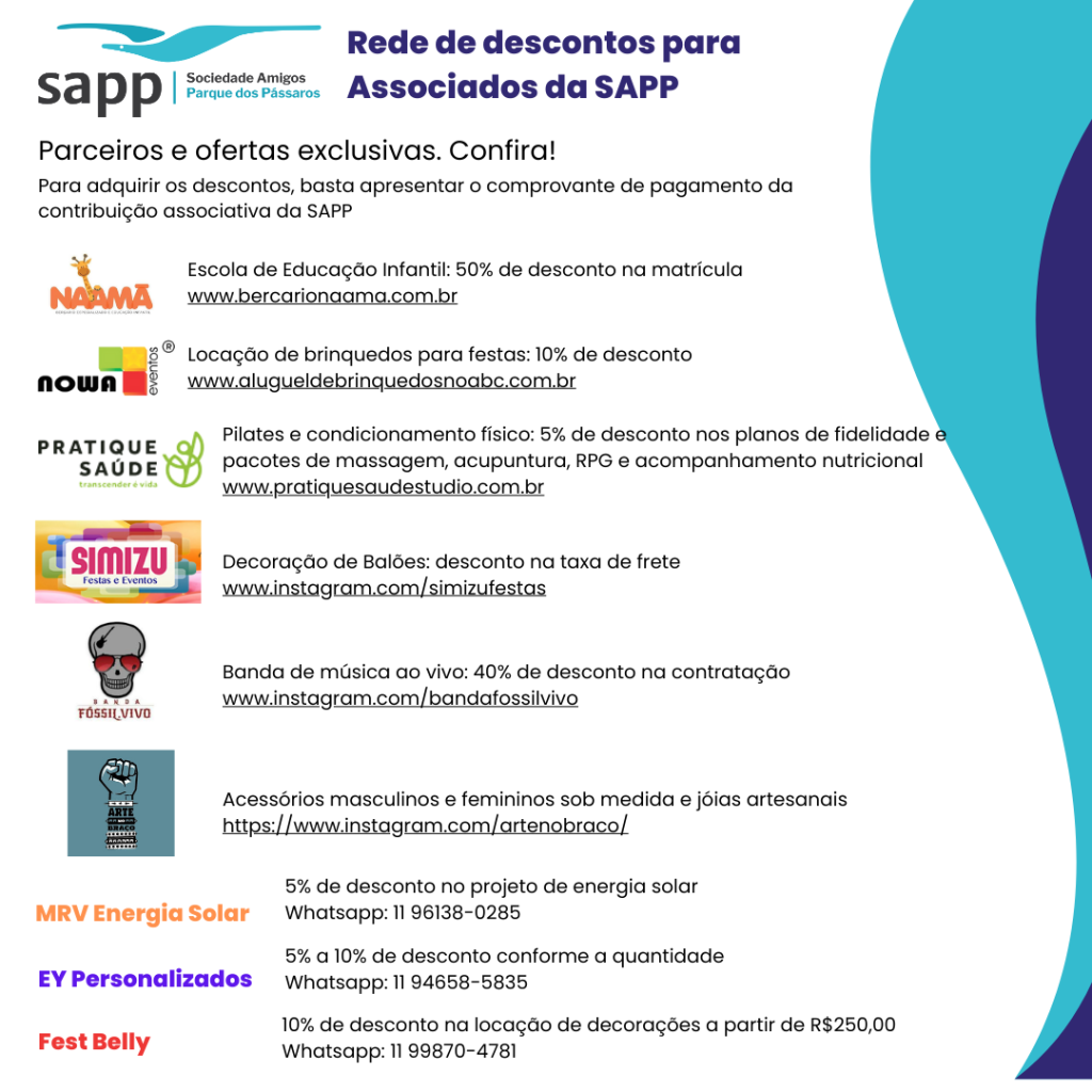 A SAPP trabalha pela melhoria da qualidade de vida de todos que residem e frequentam o Parque dos Pássaros em São Bernardo do Campo.